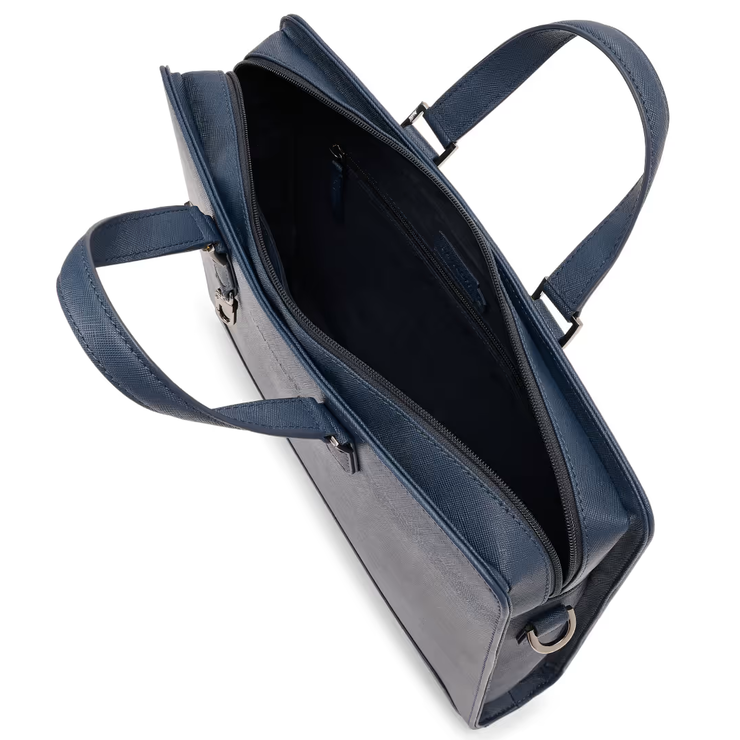 Inside, the bag offers a well organized compartment suitable for documents, a laptop, and essential accessories. The secure zip closure keeps belongings protected while maintaining a clean and professional aesthetic.