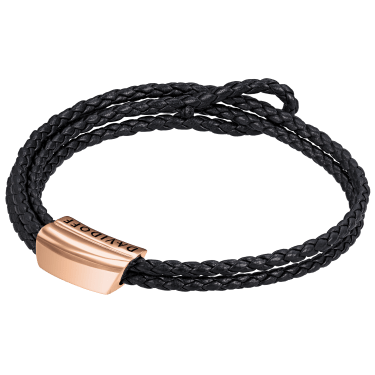 The bracelet features multiple strands of woven leather that create a textured and dynamic look. Its elegant rose gold tone clasp engraved with the Davidoff name adds a distinctive luxury detail while ensuring a secure and comfortable fit.