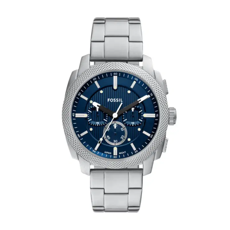 1-4 working days.The Fossil Machine mens chronograph watch features a rugged and industrial inspired design. It showcases a deep blue textured dial with luminous markers and chronograph subdials for precise timekeeping. The stainless steel case and bracelet provide durability and a powerful masculine look, making it ideal for everyday wear and modern styling.