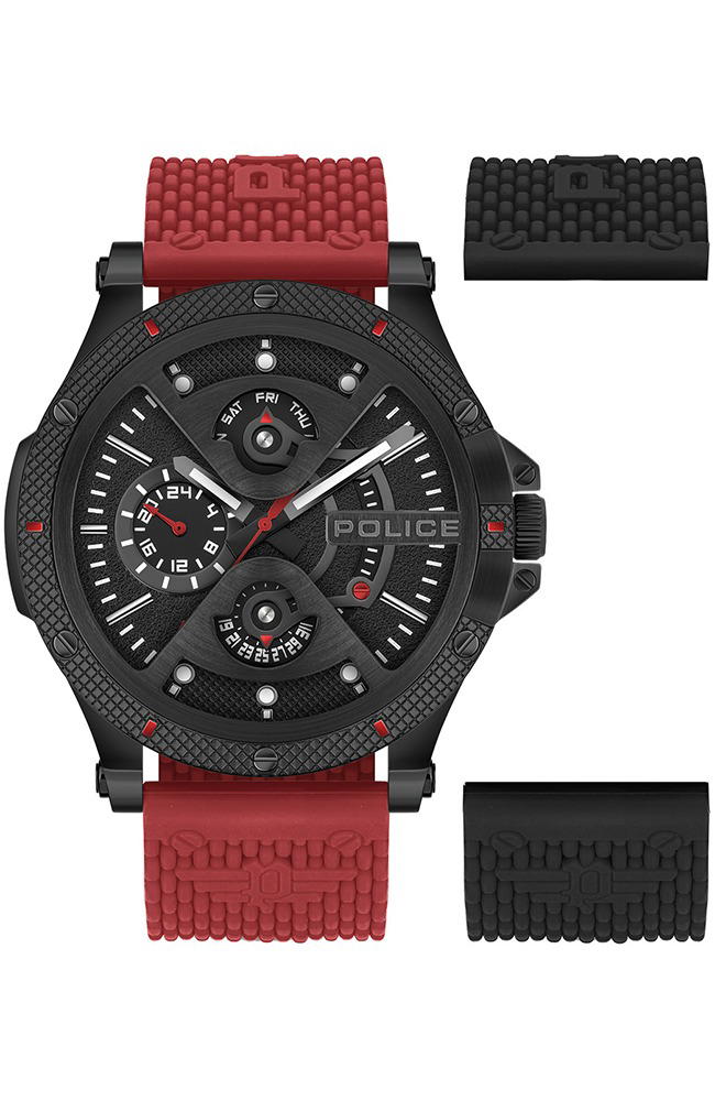 1 إلى 4 أيام عمل.يتميز طقم ساعة بوليس سوريجاو للرجال بتصميم عصري جريء يعكس الهوية القوية لعلامة بوليس. تأتي الساعة بميناء أسود بتصميم مميز مع تفاصيل متعددة ووظائف فرعية تضيف طابعا رياضيا وتقنيا جذابا.